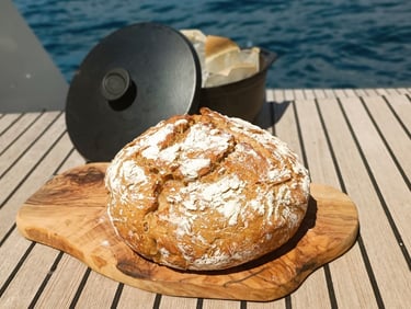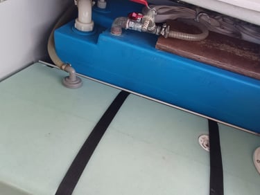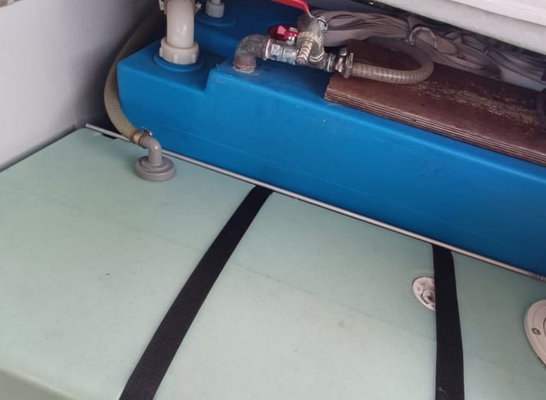 A total of 550 Liter of fresh water is on board. A tap coming from the watermaker is used to fill small quantities of perfect drinking water before it gets into the tank where it sits longer.